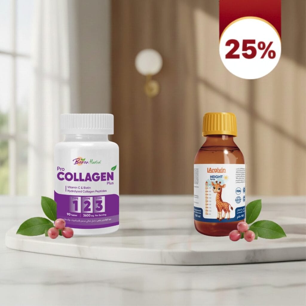 باقة حبوب الكولاجين للأم وشراب الأرجفين لنمو الطفل – عناية متكاملة لكِ ولطفلكِ