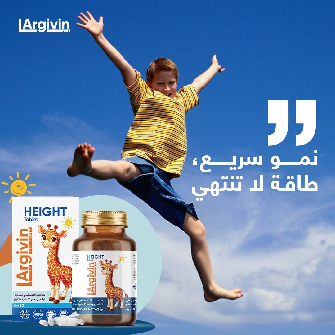 أقراص Argivin Height هي مكمل غذائي متكامل للأطفال، مصمم لدعم النمو الطبيعي وتعزيز المناعة والصحة العامة. يحتوي على مجموعة من الفيتامينات والمعادن الأساسية لضمان تطور صحي للأطفال في مرحلة النمو.