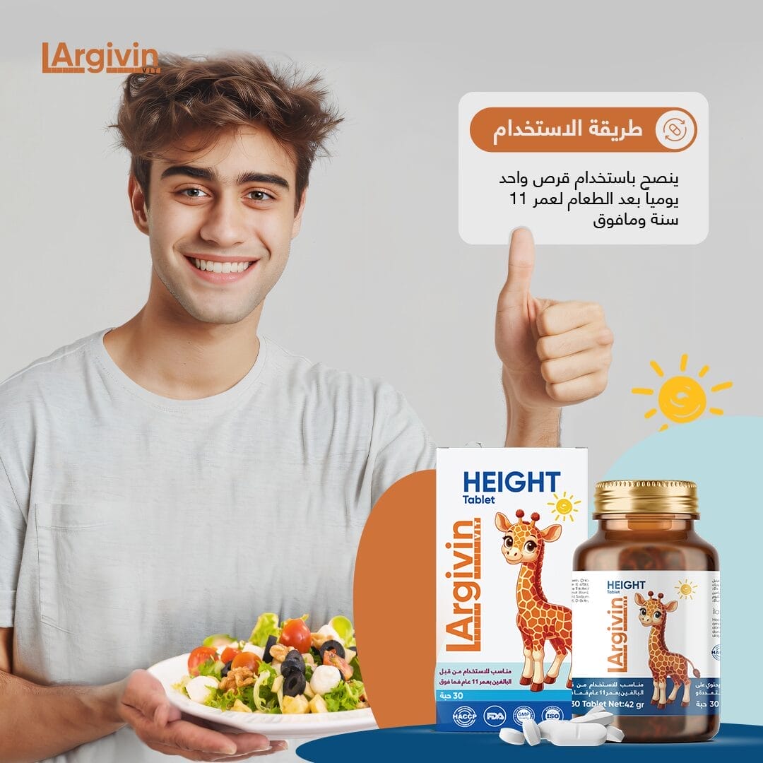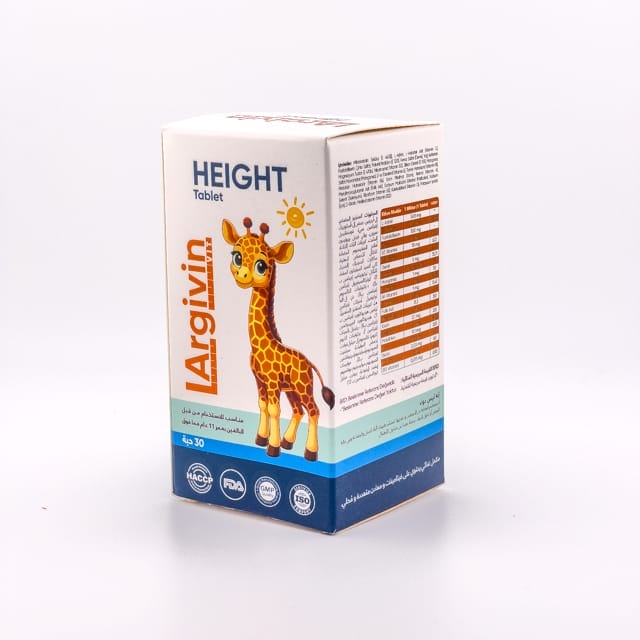 أقراص Argivin Height هي مكمل غذائي متعدد الفيتامينات صُمم خصيصاً لدعم نمو وتطور الأطفال. يحتوي هذا المنتج على مجموعة متكاملة من الفيتامينات والمعادن الأساسية التي تلبي احتياجات الأطفال الغذائية، خاصة في منطقة الخليج العربي.