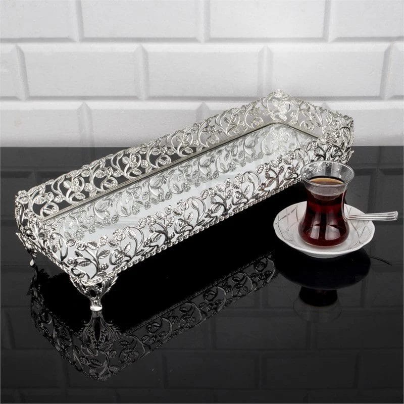 صحن تقديم Roza طويل حجم كبير – فضي شحن سريع لأنحاء العالم من قصر الباشا خلال 3 الى 5 أيام اطلب الآن تصلك لباب المنزل