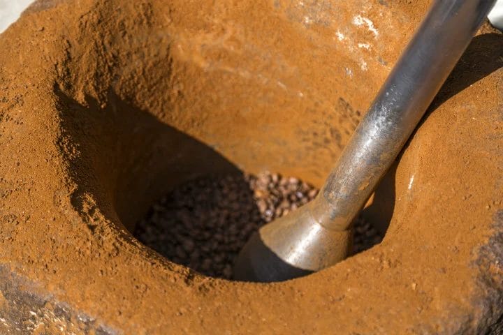 يشير اسم القهوة إلى طريقة طحنها، حيث يتم تحضير قهوة ديبيك عن طريق طحن حبوب البن مع الأعشاب الأخرى في هاون كبير من الحجر.