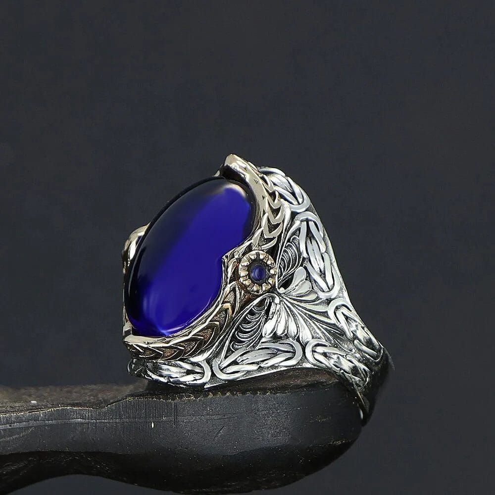 خاتم رجالي فضة إسترليني عيار 925 بحجر الزركون الأزرق بارالمنت