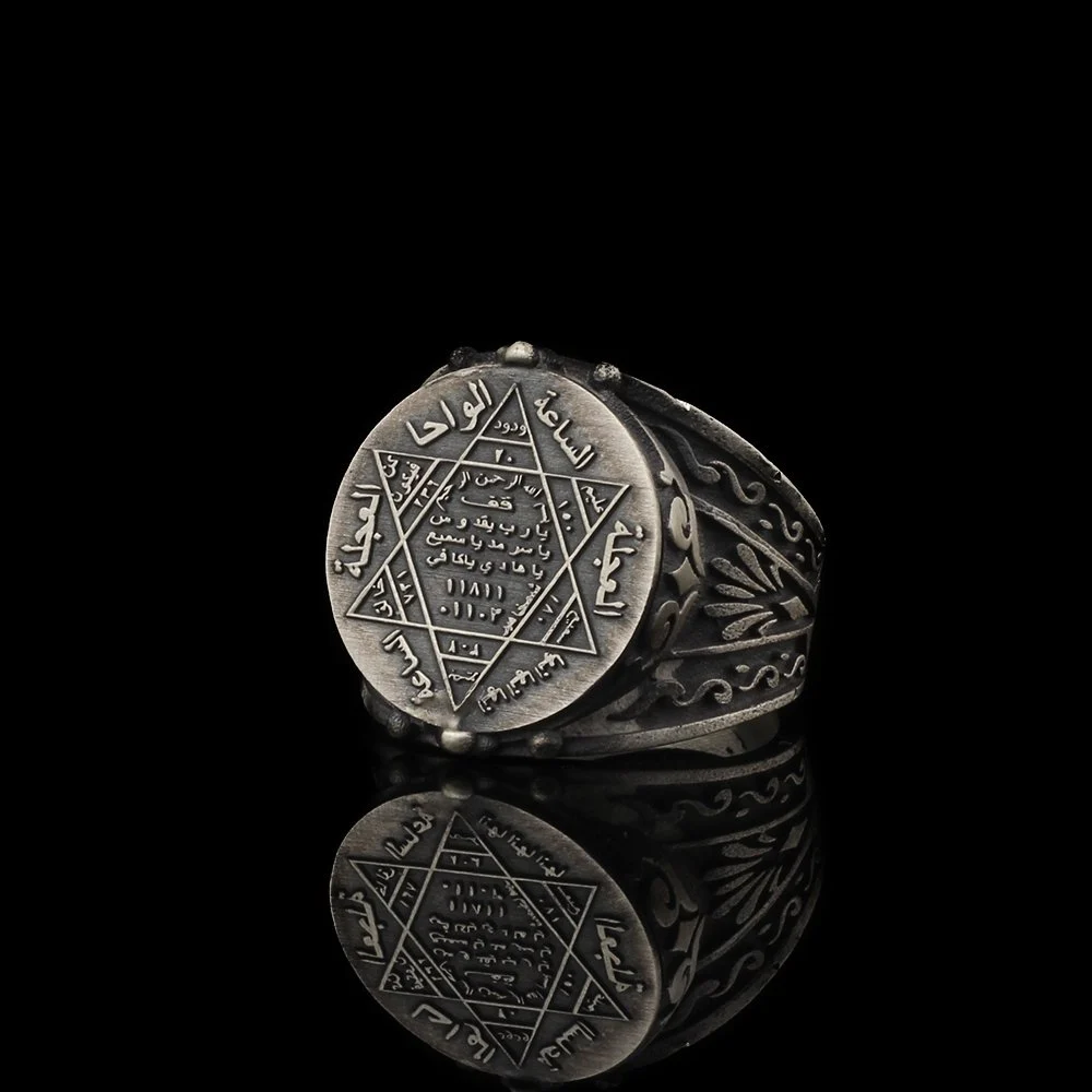 استعد للانغماس في عالم الأناقة الأنتيك مع خاتم رجالي مميز مصنوع من الفضة عيار 925، ومحفور بختم سليمان الساحر. احصل على قطعة فنية تجمع بين التراث والأناقة العصرية لإطلالة لا تُنسى.