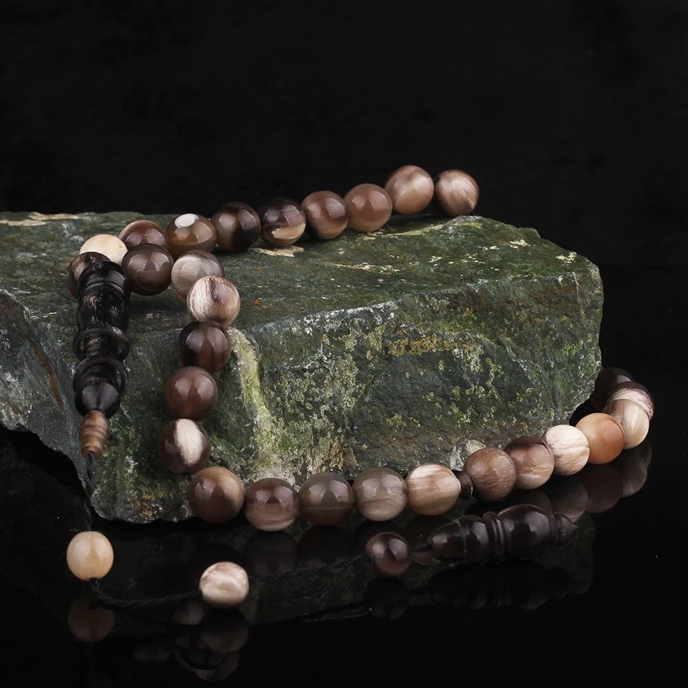 استعد للانغماس في تجربة روحية مميزة مع سبحة بوفالو الفاخرة، المصنوعة من قرن الجاموس الفاخر. مع مواصفاتها الفريدة والأنيقة، ستجد نفسك متصلاً بالروح والتراث العريق.