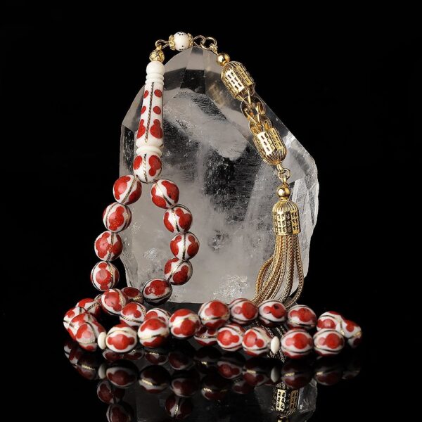 تتميز هذه السبحة بتصميم فريد من عظم الجمل الفاخر، حيث يتم استخدام العظام الطبيعية لتوفير جمال لا مثيل له. بالإضافة إلى ذلك، تزخر السبحة بتطريز رائع بالمينا، مما يعزز جمالها ويضفي عليها لمسة فنية مذهلة.