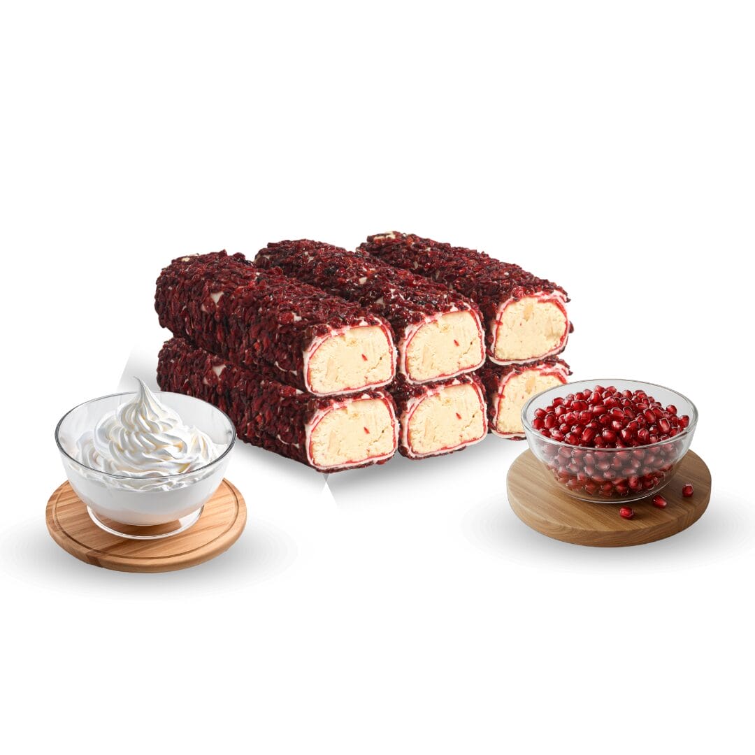 استمتع بطعم الحلقوم التركي التقليدي مع حلقوم تركي مزين بالرمان محشو بالبندق والكريمة، تجربة ناعمة ولذيذة لمحبي النكهات الفاخرة.