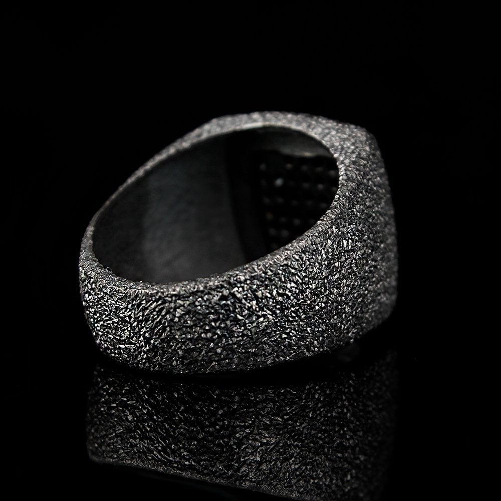 خاتم من الفضة الإسترليني عيار 925 مصنوع يدويًا ومجهز بتقنية السفع الرملي