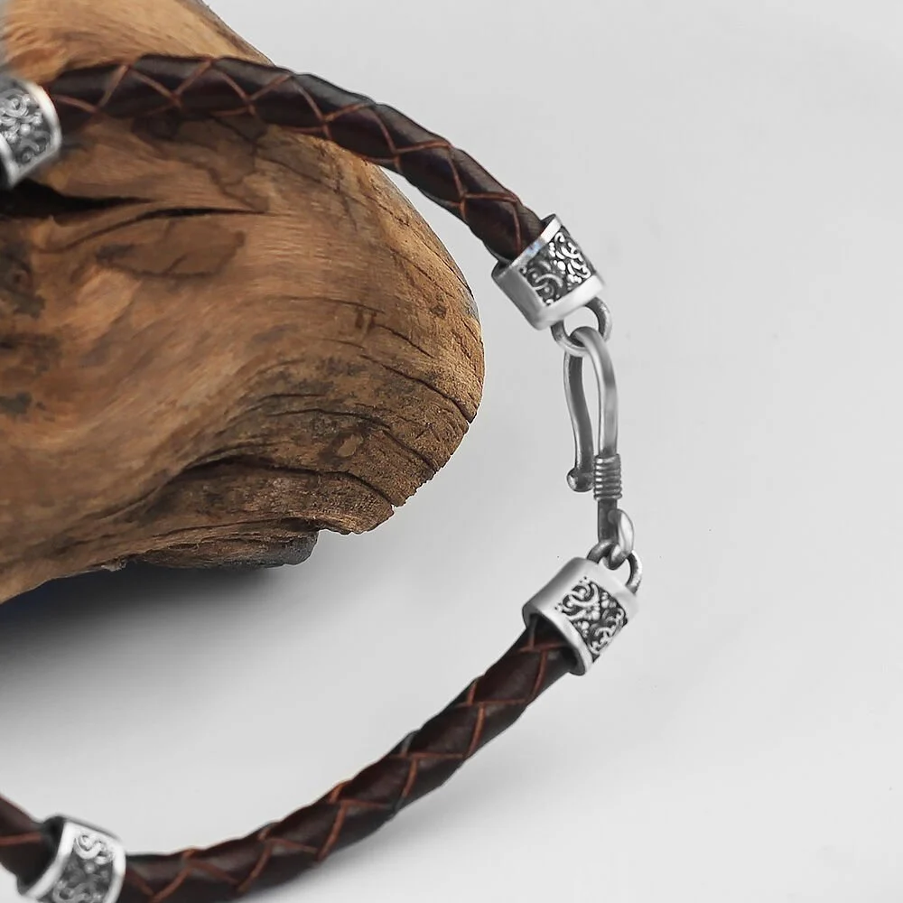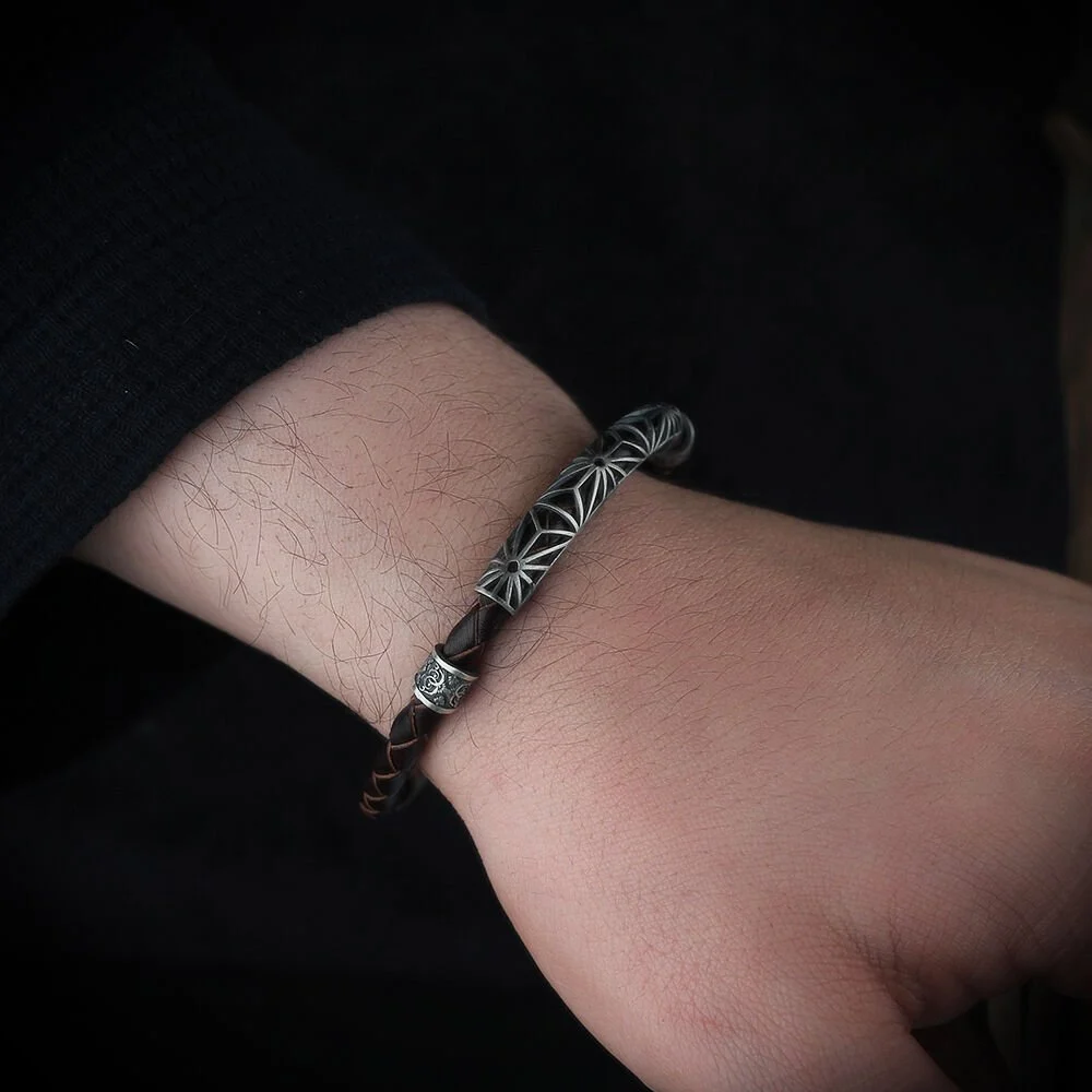 احصل على سوار جلد الفضة الإسترليني 925 المنقوش الرجالي الآن واستعد للتألق بأسلوب فريد يلفت الأنظار ويعكس روح الرجولة والتميز.
