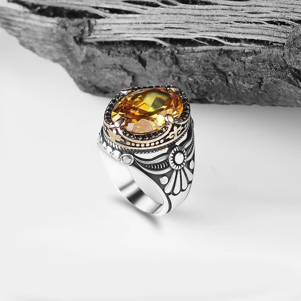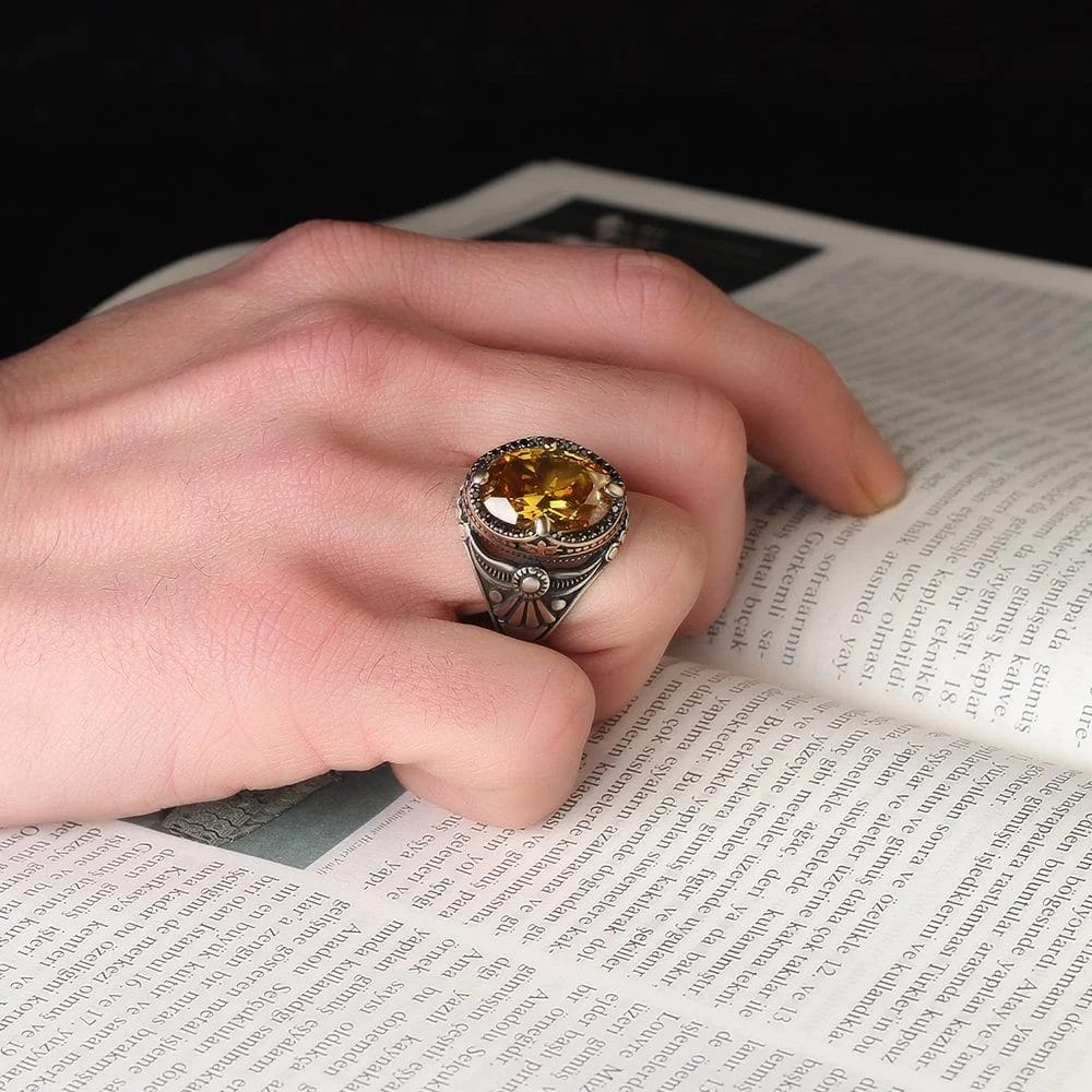 استعد لتجربة الفخامة والأناقة الراقية مع خاتم رجالي مذهل من الفضة الإسترليني، والمزيّن بحجر السترين الساحر. إنها قطعة مجوهرات تجمع بين التصميم الأنيق والجودة العالية، لتترك انطباعًا لا يُنسى.