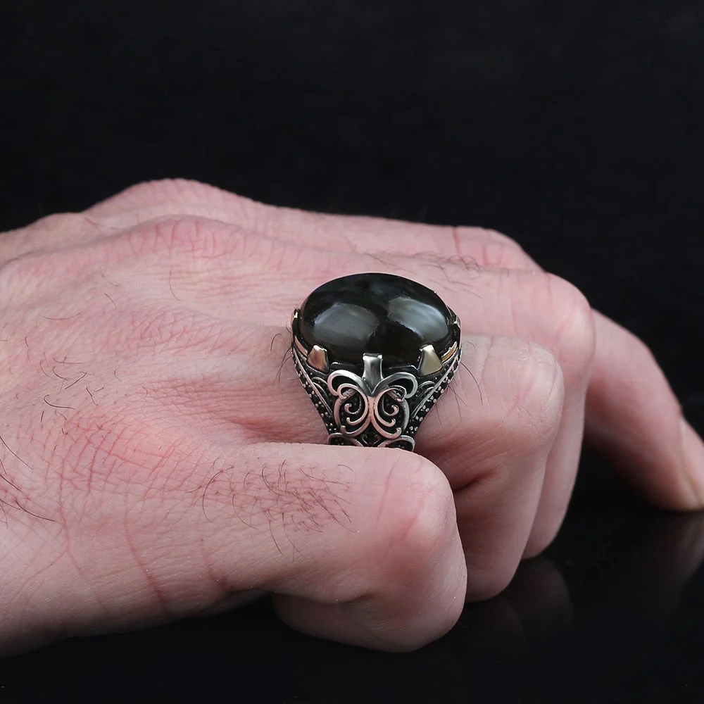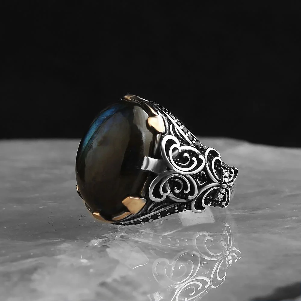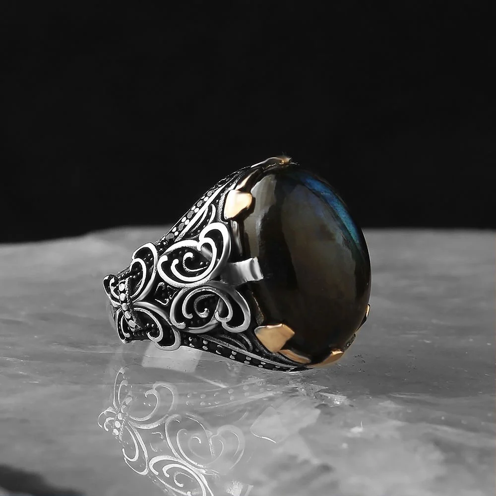 خاتم رجالي من الفضة الإسترليني عيار 925 بحجر اللابرادوريت