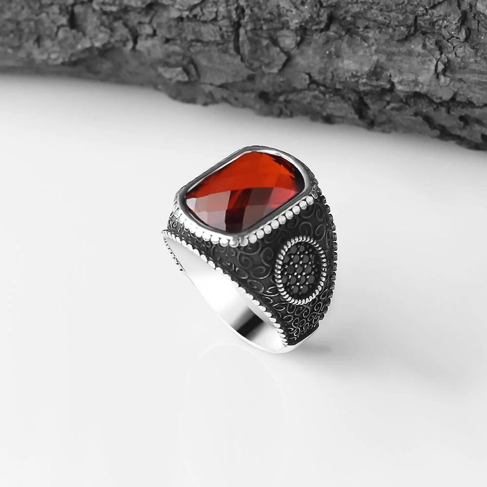 احصل على خاتم رجالي مذهل يجمع بين فخامة الفضة عيار 925 وسحر حجر الزركون الأحمر. تصميم فريد وخفة الوزن يجعله مثاليًا للرجال الذين يسعون للأناقة والراحة.