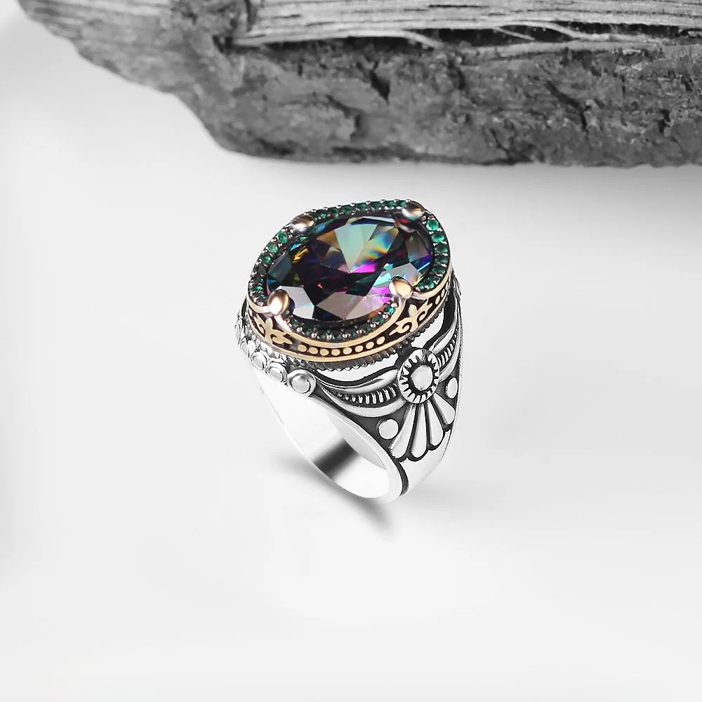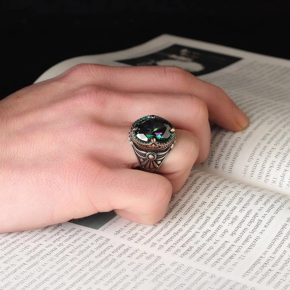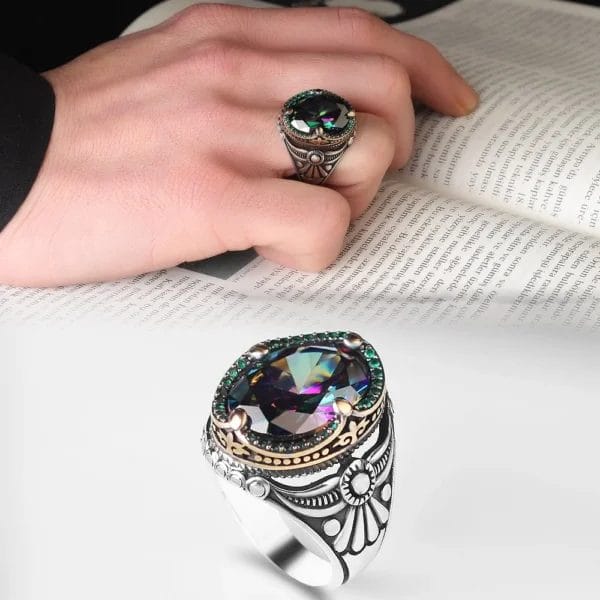 اكتشف سحر الاناقة والفخامة مع خاتم رجالي فضة إسترليني بحجر التوباز الصوفي المدهش.