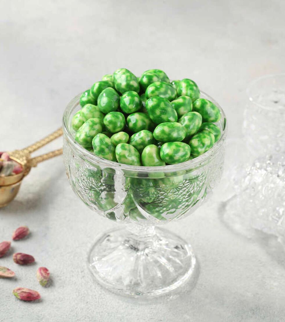 - 1 كيلو من أجود أنواع الفستق الحلبي المغطى بشوكولاتة الفستق الطبيعي.