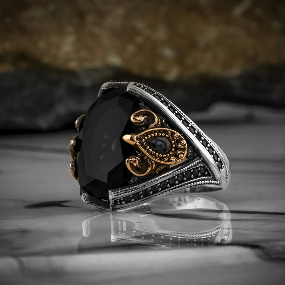 مميزات خاتم رجالي فضة بحجر الزركون الأسود