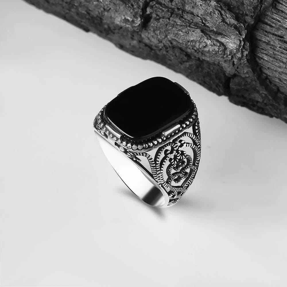 احصل على خاتم رجالي فضة الإسترليني عيار 925 بحجر العقيق الأسود واستعرض أناقتك وتميزك في كل مناسبة. فضة عيار 925 الفاخرة وحجر العقيق الأسود الجذاب يجعلان هذا الخاتم قطعة فريدة من نوعها. تصميم أنيق وخفيف الوزن يجعله مريحًا للارتداء لفترات طويلة. اجذب الأنظار وأضف لمسة من الغموض والأناقة إلى إطلالتك مع هذا الخاتم الساحر.