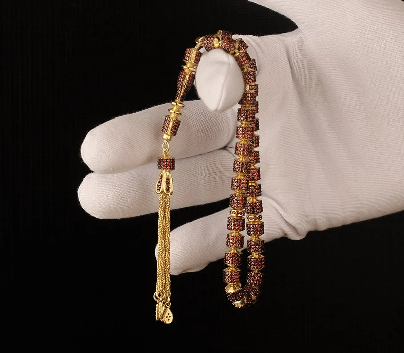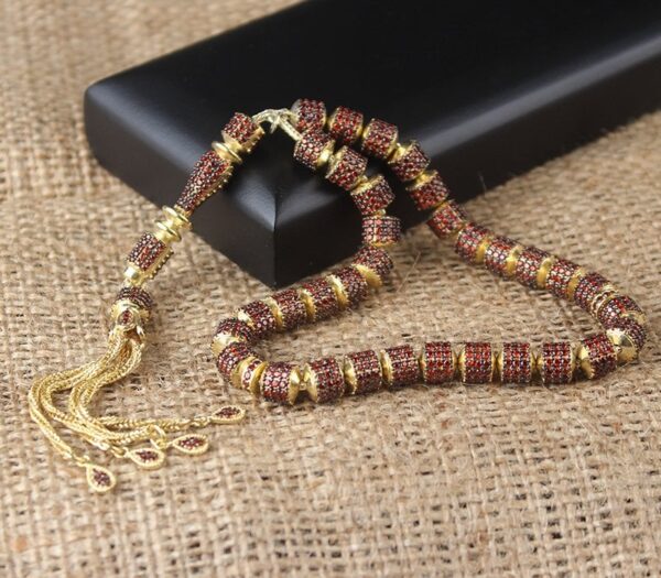 تزين هذه السبحة الفريدة بأحجار الزركون الساحرة التي تضفي لمعانًا وبريقًا رائعًا على كل خرزة. يتم استخدام تقنية التثبيت الدقيقة لتأمين الأحجار بشكل آمن ومضمون، مما يعطيك الثقة في أنها ستبقى مشرقة ومتألقة لفترة طويلة. استعد لسحر الأحجار اللامعة التي ستجعلك تشعر بالتميز والجمال في كل صلاة تؤديها.