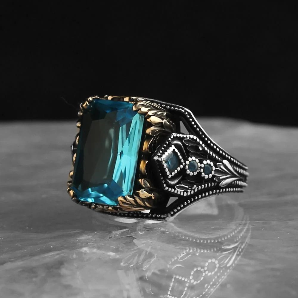 - رمزية الأناقة والهدوء: حجر أكوا مارين يرمز إلى الهدوء والوضوح، مما يجعل هذا الخاتم ليس فقط قطعة جميلة، بل أيضًا رمزًا للسلام الداخلي والطمأنينة.