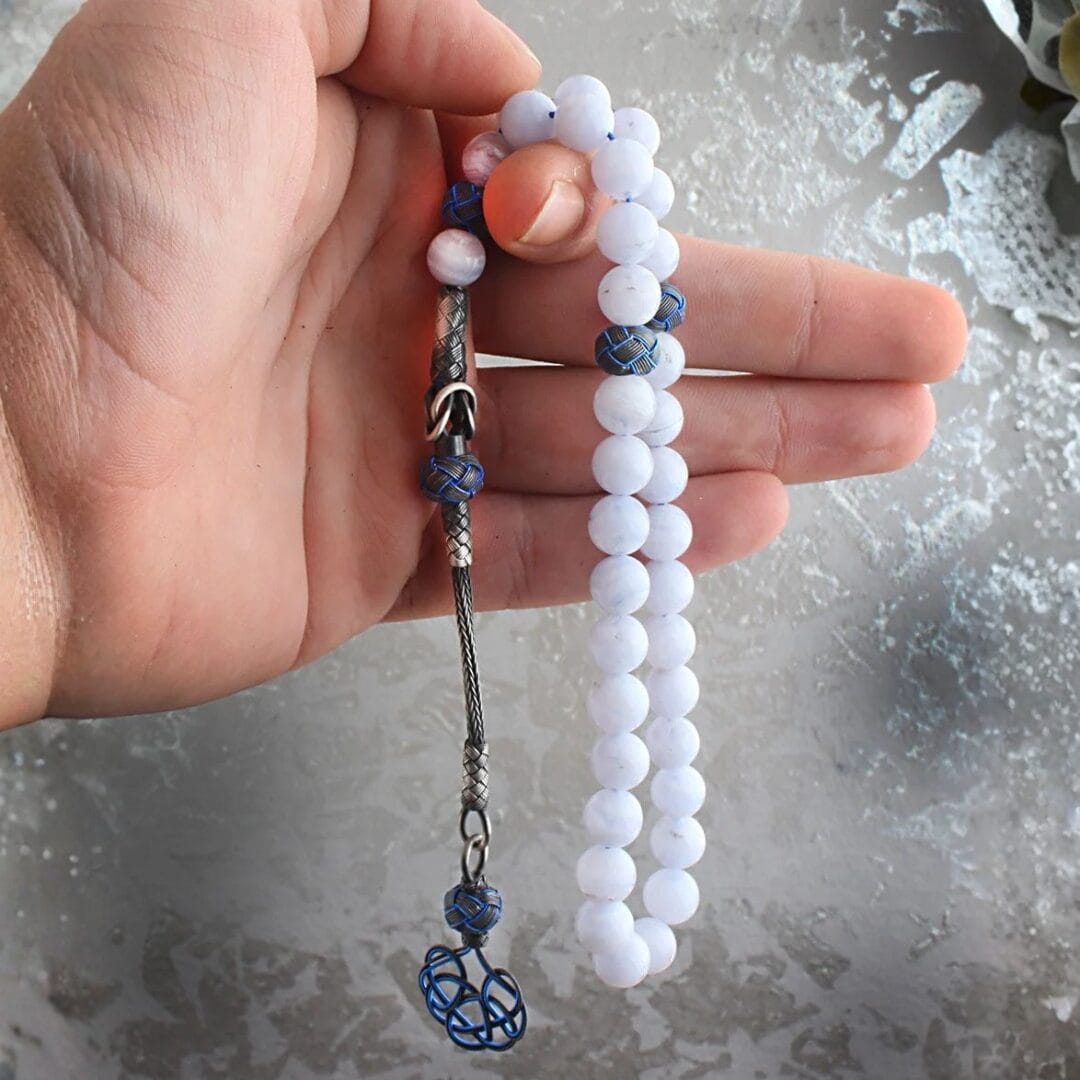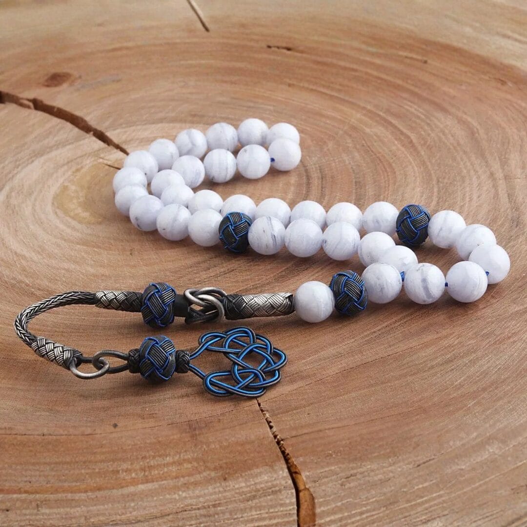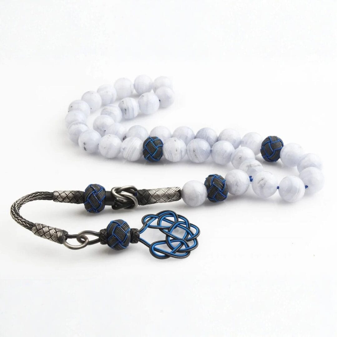 سبحة فضة بحجر الكالسيدون مع شرابة فضة: