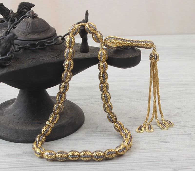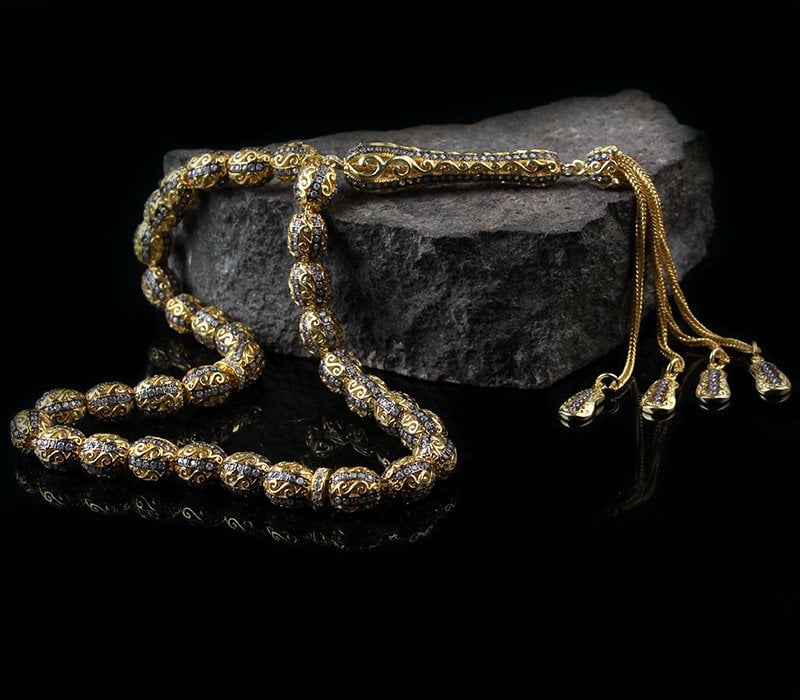- حجر الزركون المذهب: يضفي لمسة من الأناقة والتميز، مما يجعل السبحة قطعة فنية راقية.
