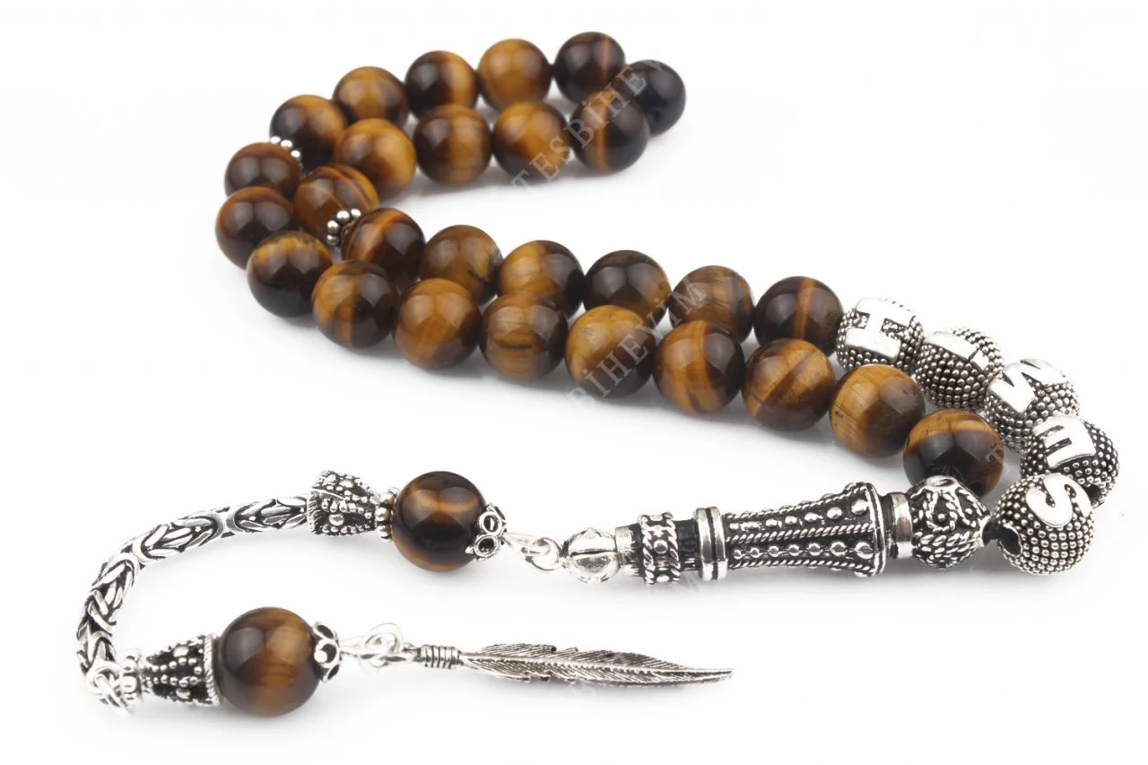 سبحة فضة عيار 925 مزينة بحجر الكزاز – تراث فني في كل حبة، تمتزج فيها الأناقة مع الشخصية.