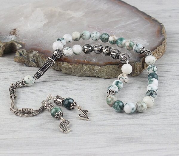 امتلك سبحة فريدة وجميلة مصنوعة من حجر العقيق الخشبي الفاخر، مع شرابة فضة عيار 925. تصميم هذه السبحة يجمع بين جمال الحجر الطبيعي ولمعان الفضة ليمنحك قطعة فريدة من نوعها.